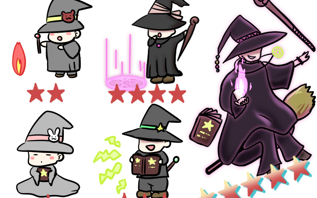 レア度が上がるにつれ、魔法の習熟度が高まっていく魔術師のイラストです。…