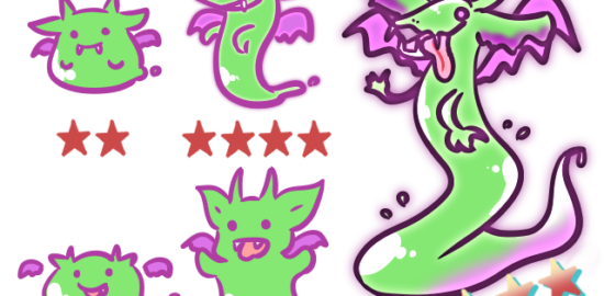 レア度で装備が変わる、可愛らしい耳をもったモンスターのイラスト…