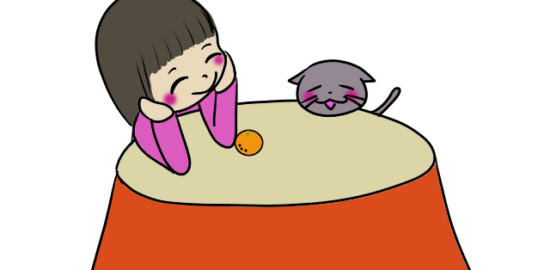 炬燵であたたまる女の子のイラスト