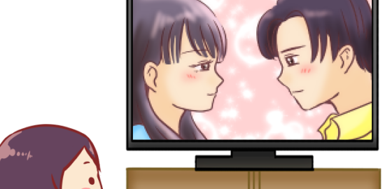 恋愛ドラマを視聴する人のイラストです。…