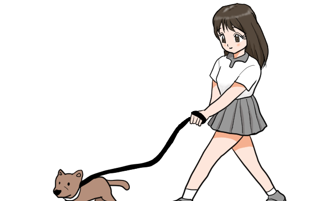 犬の散歩をする少女のイラスト