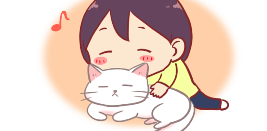 猫の匂いをかいで癒されている人のイラスト