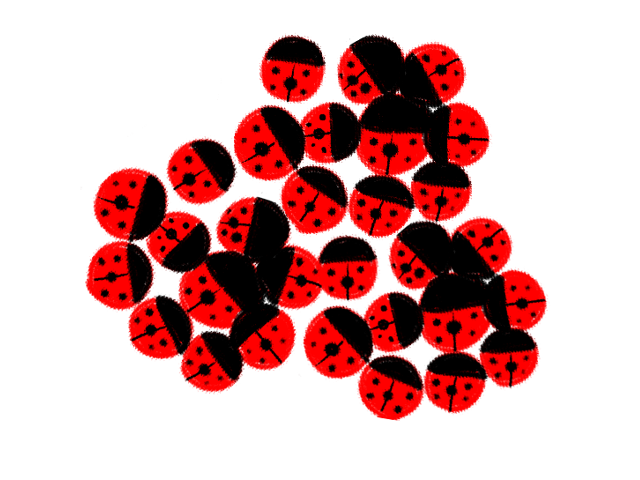 集まって冬を乗り越えるテントウムシのイラストです。