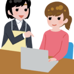 1. パソコン作業を教える職員のイラスト(女性)