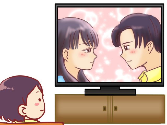 恋愛ドラマを視聴する人のイラストです。