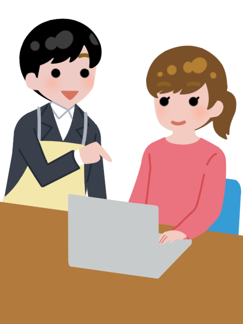 4. パソコン作業を教える職員のイラスト(女性)