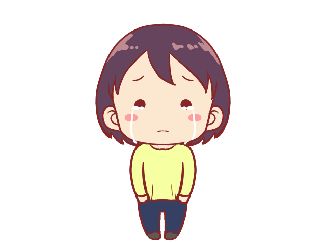服の裾を握って泣いている人のイラストです。