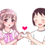2. アイドルとハートのポーズを作るファンのイラスト