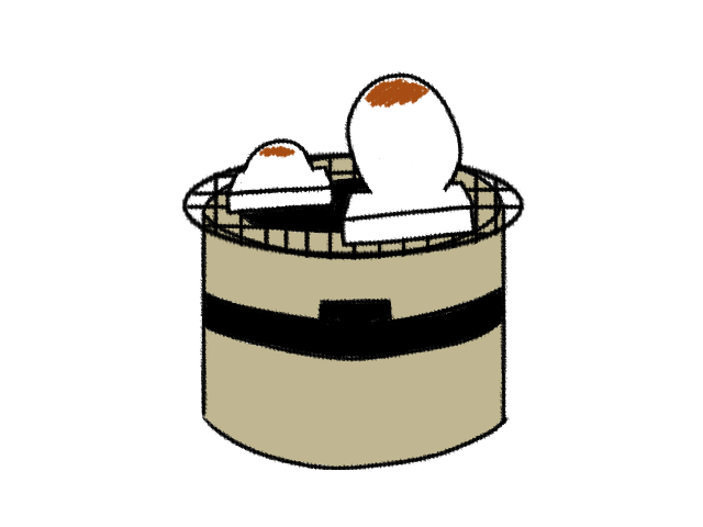 七輪の上でぷっくりと膨らんだお餅のイラストです。