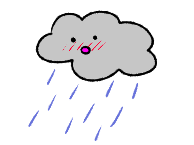 雨雲が雨を降らすイラストです。