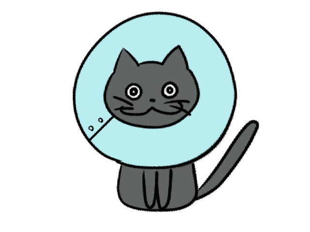 エリザベスカラーを付けた猫のイラスト