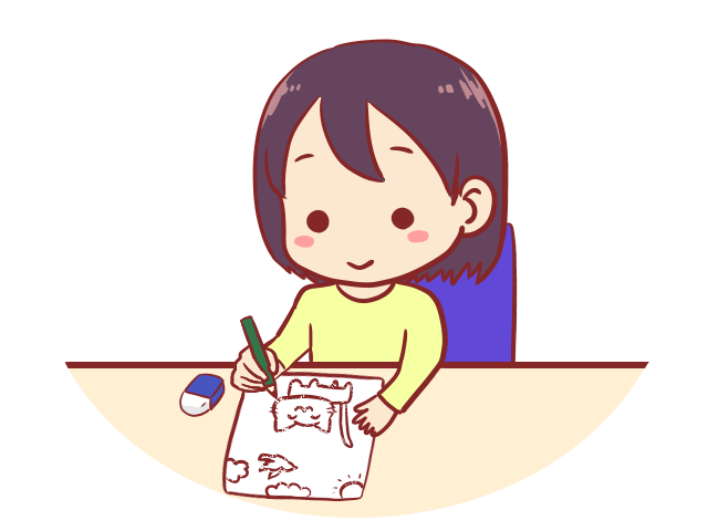 机に向かって、絵をを描く人のイラストです。