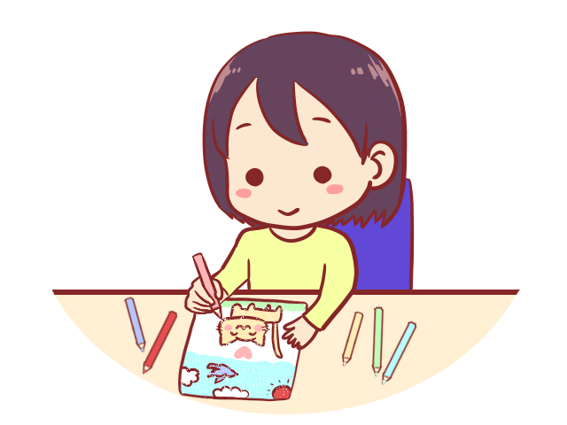 絵に色を塗っている人のイラストです。