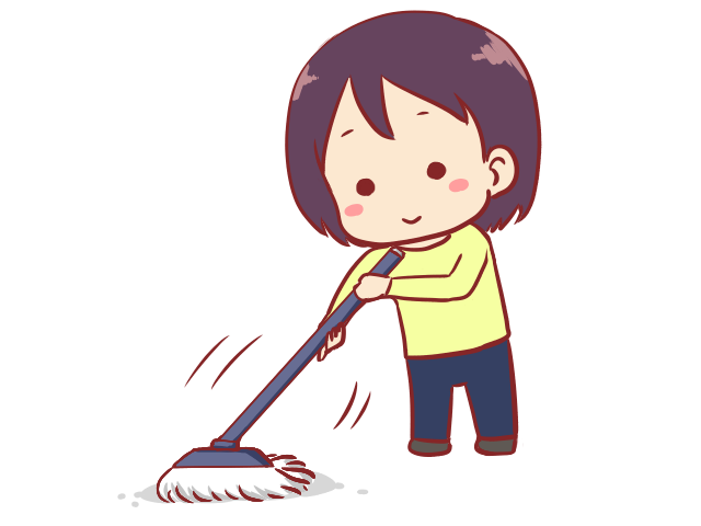 モップで掃除する人のイラスト