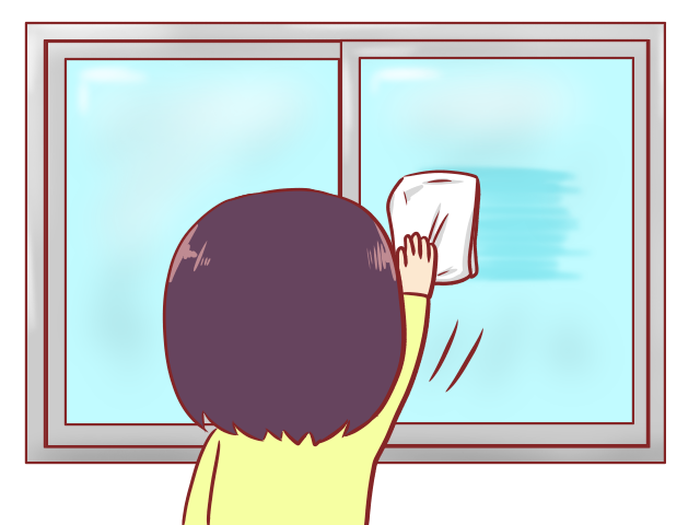 窓を拭いて綺麗にしている人のイラストです。