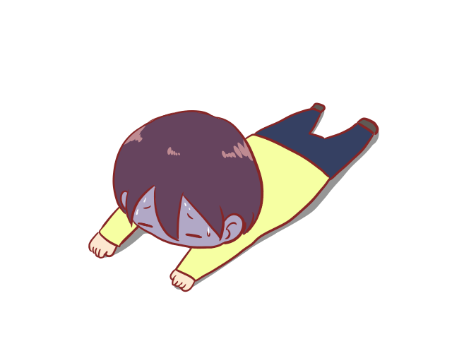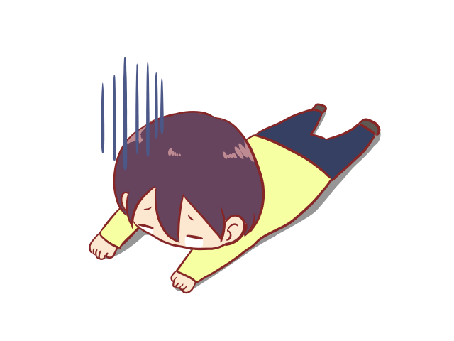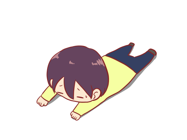 地面にうつ伏せになっている人のイラストです。
