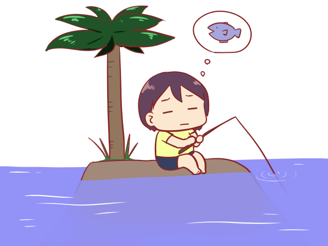 狙っている魚がかからない人のイラストです。