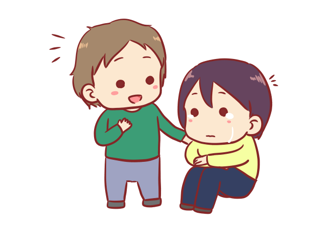 泣いている人と寄り添う人のイラスト
