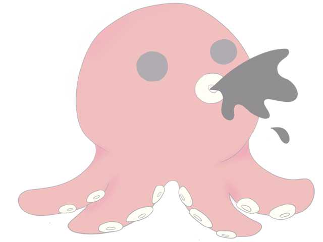タコが墨を吹いているイラストです。