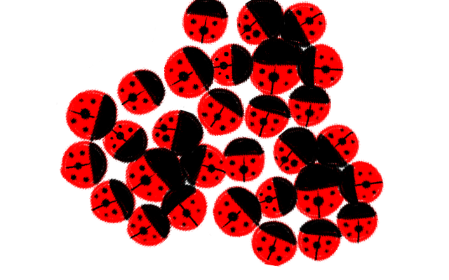 集まって冬を乗り越えるテントウムシのイラストです。…