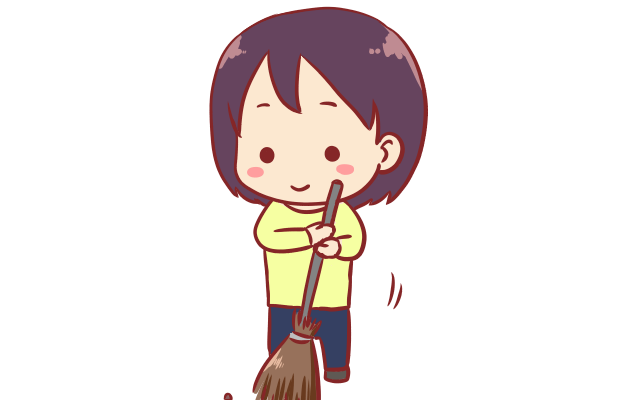 箒で掃き掃除をしている人のイラストです。…