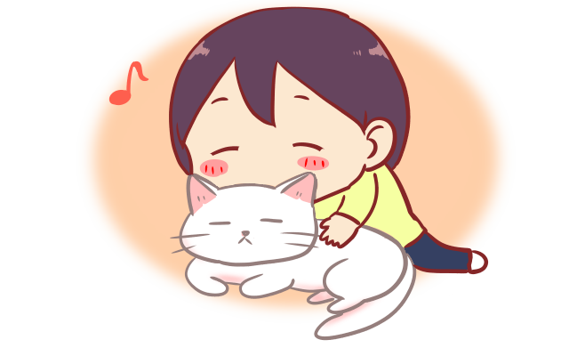 猫の匂いをかいで癒されている人のイラスト