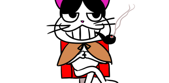 まるでシャーロックホームズのような、いで立ちの猫のイラストです。…