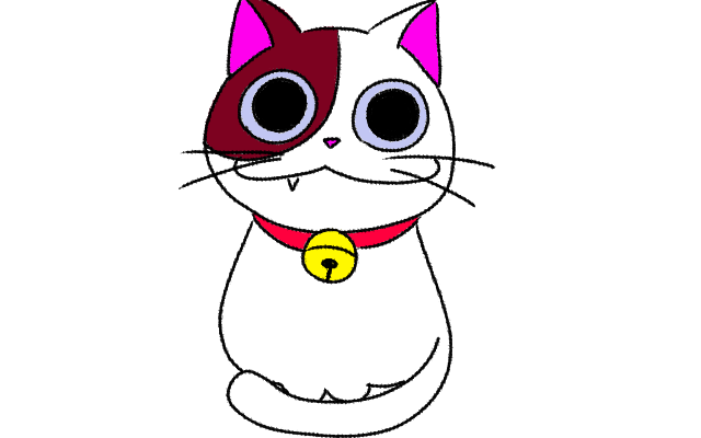 こちらを見つめ、おすわりをする猫のイラストです。…