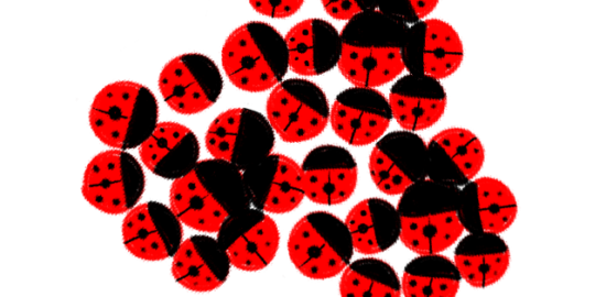 集まって冬を乗り越えるテントウムシのイラストです。…