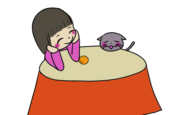 炬燵であたたまる女の子のイラスト