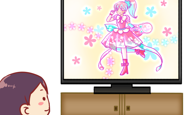魔法少女が登場するアニメを視聴する人のイラストです。…