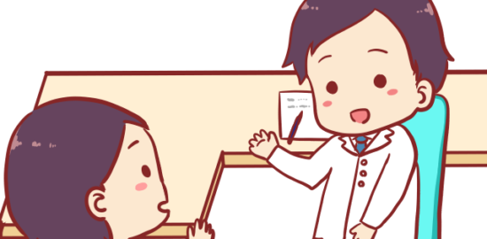 患者の悩みを聞き、指導を行う男性医師のイラストです。…