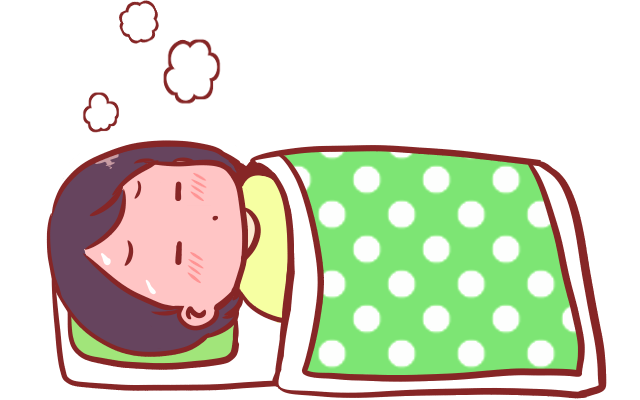 発熱して寝込んでいる人のイラスト