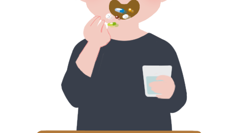薬をたくさん飲む男性のイラストです。…