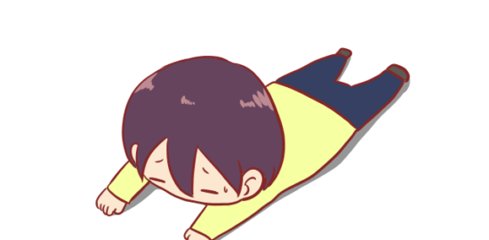 地面にうつ伏せになっている人のイラストです。…
