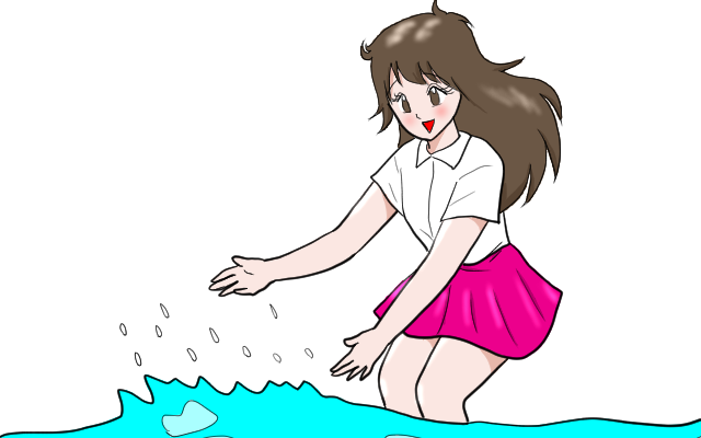 水遊びをする女の人のイラスト