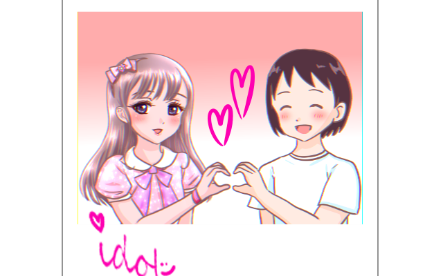 ファンと撮影した、アイドルのサイン入り写真のイラストです。…