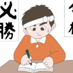 鉢巻をまいて勉強をする男の子のイラスト