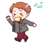 パンを口にくわえて走る学生のイラスト(男子)