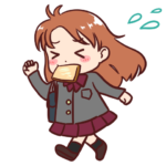 パンを口にくわえて走る生徒のイラスト(女子)