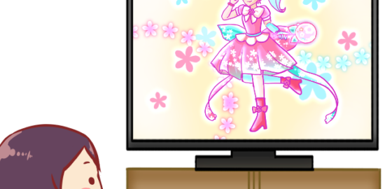 魔法少女が登場するアニメを視聴する人のイラストです。…