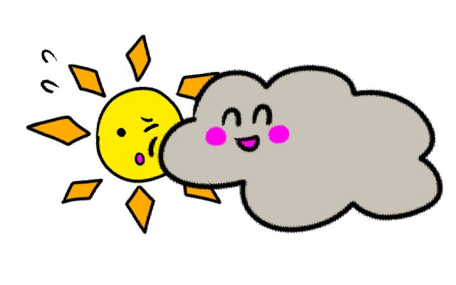 太陽を押しやる曇り雲のイラストです。…