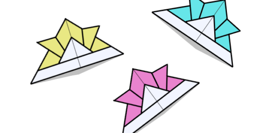 折り紙でできたカラフルな兜のイラストです。…