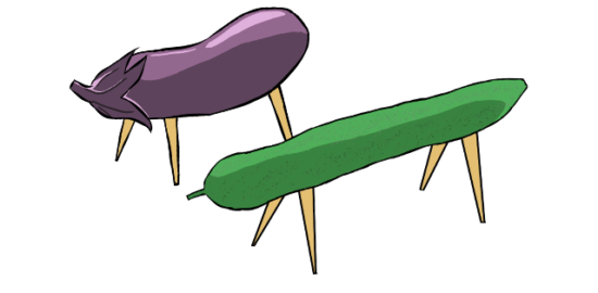 お盆のお供え物の一つ精霊馬のイラストです。…