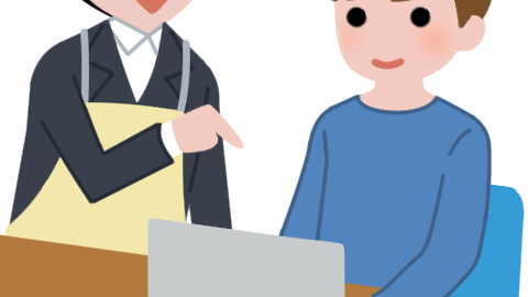 パソコン作業を教える職員のイラスト(男性)